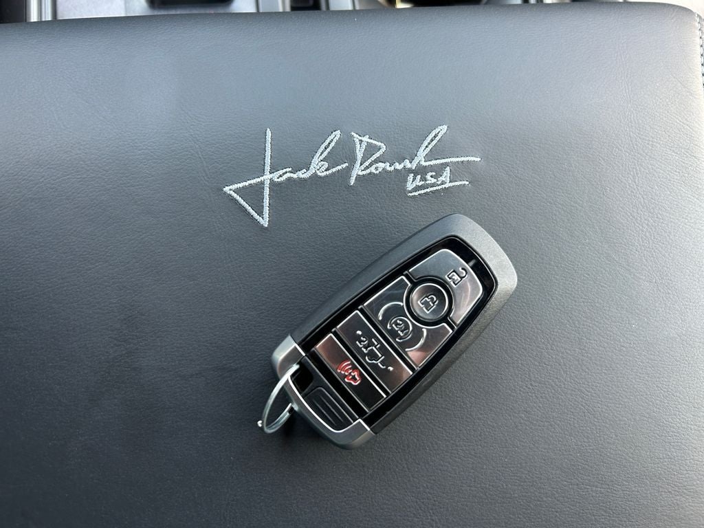 This ROUSH F-150 features the signature ROUSH High-Flow Grille with integrated lighting, paired with painted fender flares with accent lighting, ROUSH hood heat extractors, and a ROUSH front bumper cover that give the truck its unmistakable stance. Exclusive ROUSH graphics and badging, including the Jack Roush signature hood graphic, ROUSH door graphics, and USA flag graphics, reinforce its performance heritage and make it stand out from any standard F-150.